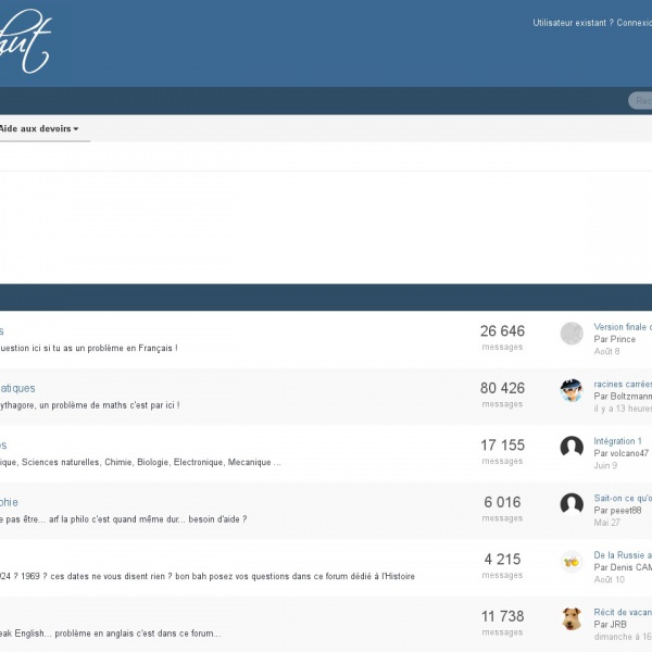 Site d’aide et d’entraide aux devoirs. Fiches de cours, résumés, exercices et forums pour aide en ligne.